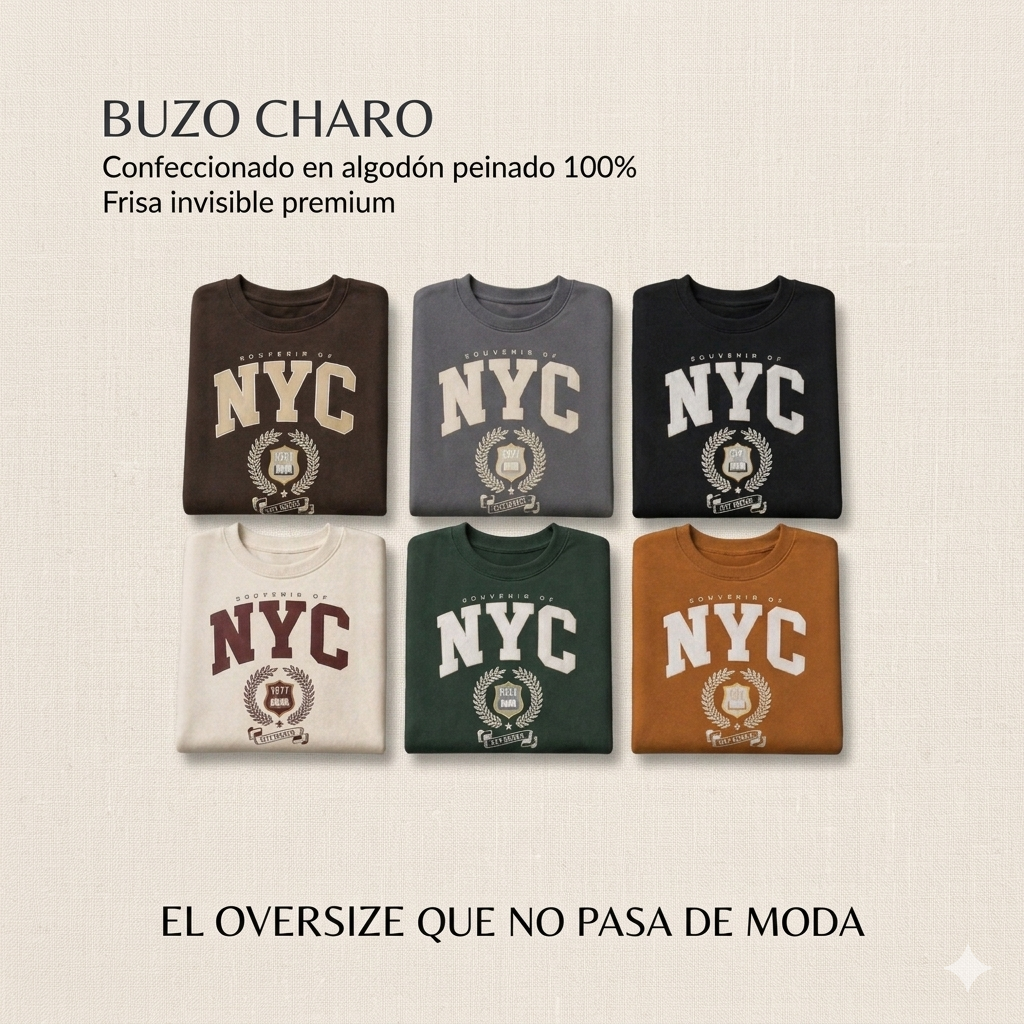 El Buzo Charo NYC es ese modelo infaltable: amplio, cómodo y con una impronta urbana que funciona todos los días. Un básico con diseño que se adapta a cualquier estilo y a cualquier cuerpo.